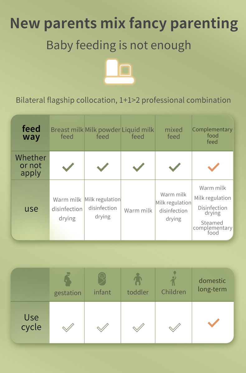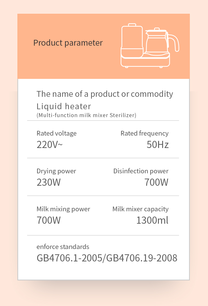 | Features: | Sterilize/Dry/Thermostatic Milk Warm |
